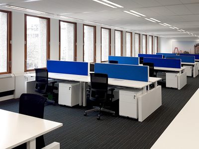 Der ARTdeskscreen (90 mm) ist ein separates, doppelseitiges schallabsorbierendes Paneel, das zwischen Schreibtischen platziert werden kann, um den Geräuschpegel zu senken und die Privatsphäre bei Gesprächen zu verbessern. Er eignet sich daher besonders für Großraumbüros, in denen viel gesprochen und/oder telefoniert wird.